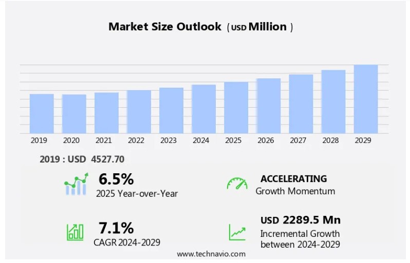 공기 질 모니터링 시장 규모는 2024년부터 2029년까지 USD 2.29억 달러 규모로 성장할 것으로 예상되며, 연평균 성장률(CAGR) 7.1%를 기록할 것으로 전망됩니다.