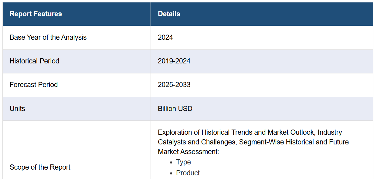 IMARC 그룹은 시장 각 부문의 주요 동향 분석과 함께 2025-2033년 지역 및 국가별 전망을 제공합니다. 본 보고서는 유형, 제품, 유통 채널 기준으로 시장을 분류하였습니다.