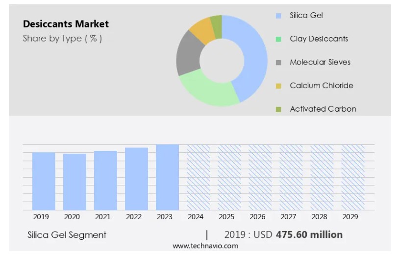 다양한 산업, 특히 포장 산업에서 수분 조절에 대한 수요가 증가함에 따라 시장이 크게 성장하고 있습니다. 이러한 추세는 제품 품질을 유지하고 유통 기한을 연장해야 하는 필요성에 의해 주도되고 있습니다. 시장 성장을 촉진하는 또 다른 요인은 소비자와 기업이 지속 가능성을 우선시함에 따라 친환경적이고 생분해성 건조제에 대한 수요가 증가하고 있다는 것입니다. 그러나, 수정된 대기 포장 및 냉장과 같은 대체 수분 조절 솔루션과의 경쟁은 시장 성장에 어려움을 안겨줍니다. 생산자들은 이 시장에서 경쟁력을 유지하기 위해 제품을 혁신하고 차별화해야 합니다. 전반적으로, 이러한 주요 트렌드와 과제에 힘입어 시장은 향후 몇 년 동안 계속해서 확장될 것으로 예상됩니다.