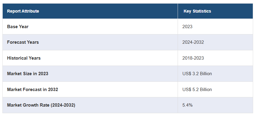 2023년 전 세계 시력 검사 장비 시장 규모는 32억 달러에 달했습니다. 앞으로 IMARC 그룹은 2024~2032년 동안 5.4%의 성장률(CAGR)을 보이며 2032년까지 시장이 52억 달러에 달할 것으로 예상하고 있습니다. 백내장 및 녹내장과 같은 다양한 안과 질환의 유병률 증가, 주요 업체 간의 여러 협력 및 파트너십, 눈 건강에 대한 개인 간의 인식상승 등 시장을 주도하는 다양한 요인이 있습니다.