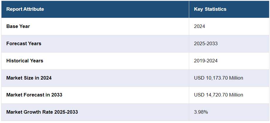 글로벌 허브 모터 시장 규모는 2024년 10,173.70백만 달러로 평가되었습니다. 앞으로 IMARC 그룹은 2025-2033년 동안 3.98%의 연평균 성장률을 보이며 2033년까지 시장이 14,720.70백만 달러에 달할 것으로 예상하고 있습니다. 현재 아시아 태평양 지역은 2024년 34.3% 이상의 허브 모터 시장 점유율을 차지하며 시장을 지배하고 있습니다. 전기 자동차(EV)로의 전환 증가, 지속적인 기술 발전, EV를 촉진하기 위한 정부의 지속적인 노력이 주로 시장 성장을 주도하고 있습니다.
