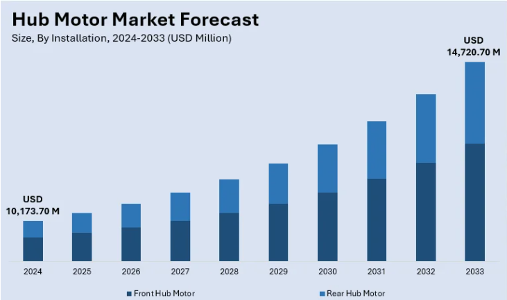글로벌 허브 모터 시장 : 설치별 (전면 허브 모터, 후면 허브 모터)