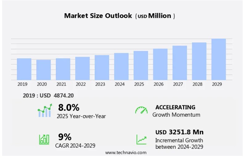 산업용 펌프 렌탈 시장 규모는 2024년부터 2029년까지 USD 3.25억 달러 규모로 성장할 것으로 예상되며, 연평균 성장률(CAGR) 9%를 기록할 것으로 전망됩니다.