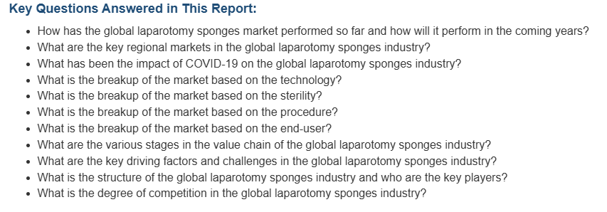 노인 인구 사이에서 복부 질환의 증가와 수술 절차의 증가가 시장 성장을 주도하는 핵심 요소입니다. 또한, 대장암, 탈장, 충수염, 췌장염, 소화성 궤양과 같은 질병의 사례가 크게 증가하면서 개복 수술에 대한 필요성이 증가하고 있습니다. 이 외에도 병원과 의료 센터에서 시행되는 제왕절개 수술의 수가 증가하면서 개복 수술 스펀지의 사용도 증가하고 있습니다. 또한, 열접착 바륨 황산염 마커가 부착된 패드와 향상된 X-레이 가시성 등 개복술 스펀지의 다양한 혁신은 시장 성장에 영향을 미치는 또 다른 요인으로 작용합니다. 게다가, 개복술 스펀지는 수술 중에 의도치 않게 체내에 남아 있을 수 있기 때문에, 제조업체들은 수술 후 잔존하는 스펀지의 수를 줄일 수 있는 쉽게 감지할 수 있고 바코드 태그가 부착된 스펀지를 개발했습니다.