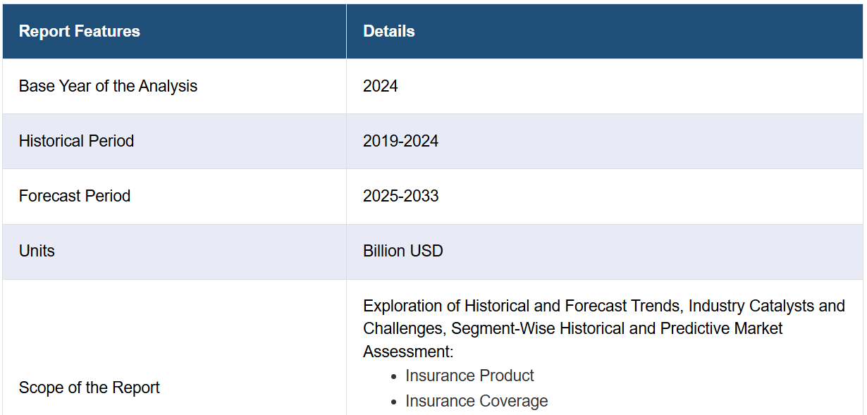 IMARC Group은 시장 각 세그먼트의 주요 동향 분석과 함께 2025-2033년 국가별 예측을 제공합니다. 본 보고서는 보험 상품, 보험 적용 범위, 유통 채널을 기준으로 시장을 분류하였습니다.