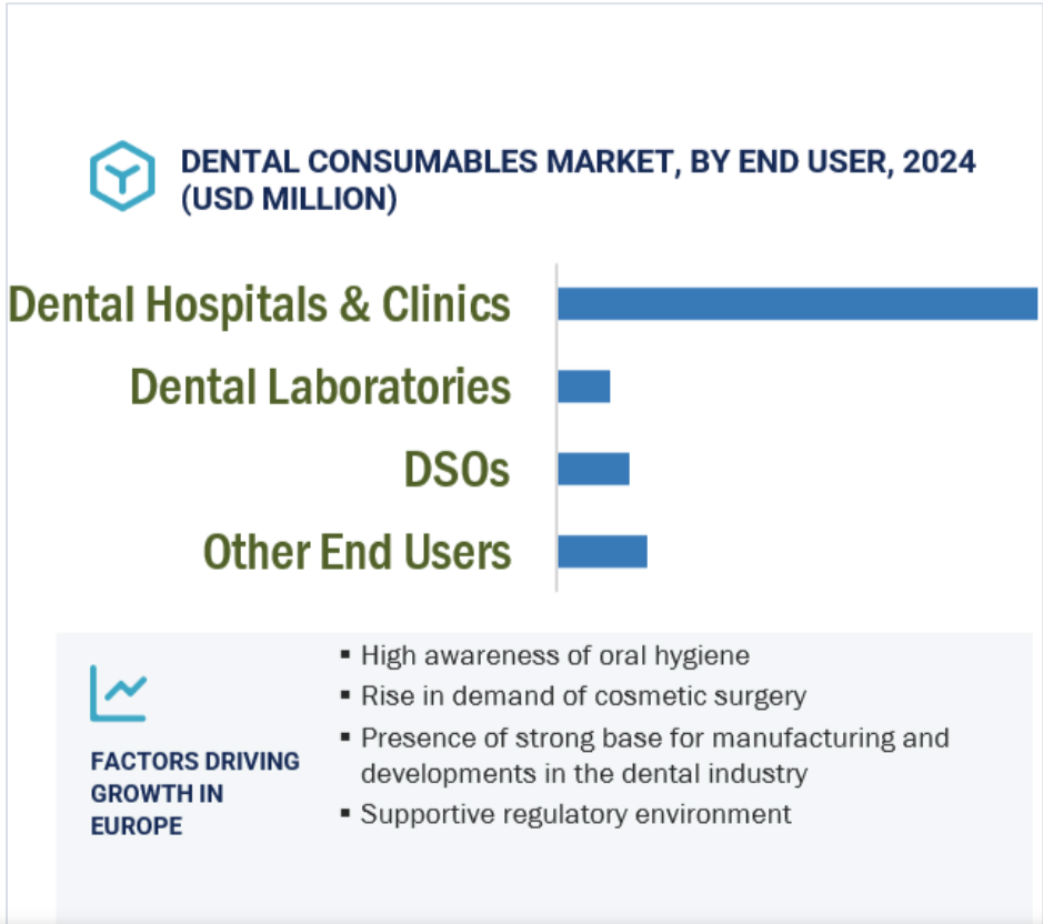 미용 치과에 대한 수요 증가와 1인당 의료비 지출 증가는 치과 소모품 시장의 성장에 기여하고 있습니다.
