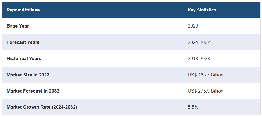 2023년 전 세계 일반의약품(OTC) 시장 규모는 1,687억 달러에 달했습니다. 앞으로 IMARC 그룹은 2024~2032년 동안 5.5%의 성장률(CAGR)을 보이며 2032년까지 시장이 2,759억 달러에 이를 것으로 예상하고 있습니다.