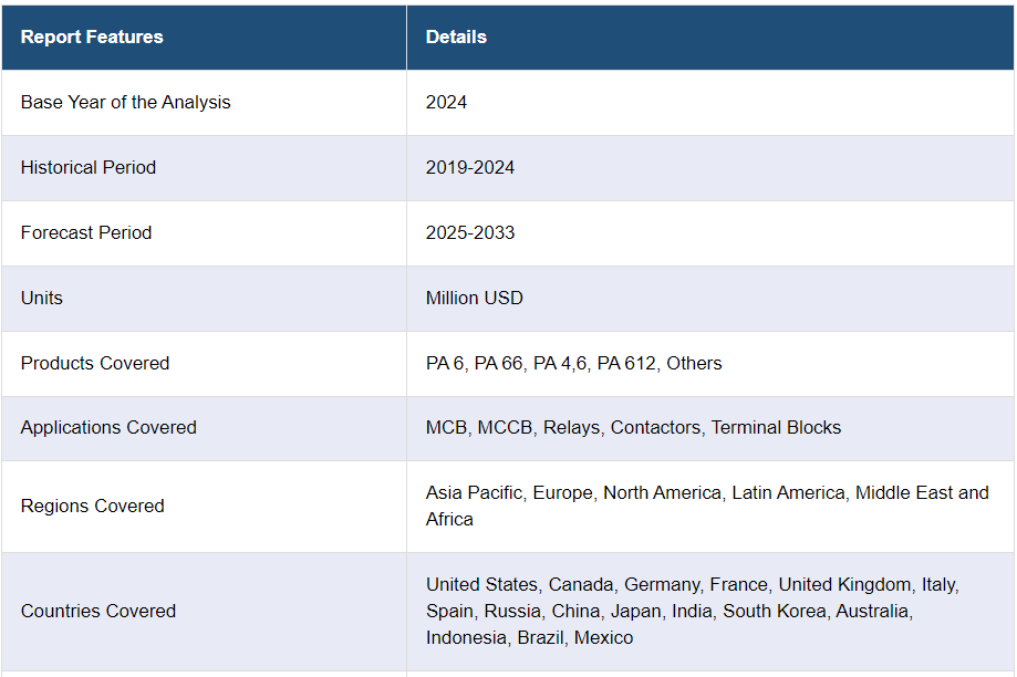 전기 및 전자 산업의 급속한 확장은 시장 성장을 촉진하는 주요 요인 중 하나입니다. 케이스, 도관 시스템, 단자대, 인클로저 및 커버와 같은 폴리아미드 기반 EPD는 인쇄 회로 기판(PCB), 배터리, 케이블 및 기타 전자 부품을 보호하는 데 널리 사용됩니다. 이 외에도 스마트폰, 태블릿, 노트북, 게임 콘솔, 웨어러블 및 오디오 시스템을 보호하기 위한 소비자 가전 산업에서의 광범위한 제품 활용은 또 다른 성장 촉진 요인으로 작용하고 있습니다. 또한 주거 및 상업용 건설 활동에서 전기 배선함, 배선, 조명 시스템 및 난방, 환기 및 공조(HVAC) 장비의 손상을 방지하기 위한 제품 적용이 증가하면서 시장 성장에 탄력을 받고 있습니다. 또한 고성능 폴리아미드 4,6(PA-4,6)을 활용하여 높은 열-기계적 및 전기적 스트레스를 견디고 난연성을 제공하며 전기 부품의 무결성을 보존할 수 있는 고급 MCCB를 생산하는 것이 시장 성장에 긍정적인 영향을 미치고 있습니다. 이 외에도 자동차 산업에서 과부하, 단락 및 기타 전기적 결함으로부터 배선 하니스, 온보드 전자 장치, 커넥터, 모터 및 센서를 보호하기 위한 제품 채택이 증가하면서 시장 성장에 박차를 가하고 있습니다. 또한 안전 표준을 유지하고 근로자를 보호하기 위해 산업 전반에 걸쳐 EPD 활용을 촉진하기 위한 다양한 정부 이니셔티브가 시행되면서 시장 성장이 촉진되고 있습니다. 가볍고 내구성이 뛰어난 EPD에 대한 수요 증가, 광범위한 연구 개발(R&D) 활동, 산업에서의 자동화 및 로봇 공학 채택 증가, 전기 자동차(EV) 수요 증가 등 기타 요인들이 시장 성장을 견인할 것으로 예상됩니다.