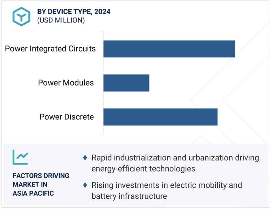 이 성장은 자동차, 재생 에너지, 소비자 전자제품, 산업 자동화 등 주요 산업 분야에서 에너지 효율적인 전력 변환 및 제어 솔루션에 대한 수요가 급증함에 따라 촉진되고 있습니다. 전기 차량(EV)의 확산과 전 세계적인 재생 에너지 통합 추진은 고급 인버터, 컨버터, 전력 모듈에 대한 수요를 촉진하고 있습니다. 또한 스마트 그리드, 충전 인프라, 전기화 된 공공 교통 시스템의 확장은 시장 발전을 더욱 지원하고 있습니다. 정부의 전기화 촉진 및 탄소 배출 감축을 위한 인센티브와 환경 규제는 제조업체들이 전력 전자 기술 채택을 가속화하도록 압박하고 있습니다.