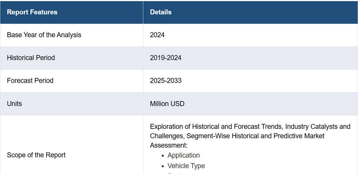 IMARC 그룹은 시장 각 세그먼트의 주요 동향 분석과 함께 2025-2033년 국가별 전망을 제공합니다. 본 보고서는 응용 분야 및 차량 유형별로 시장을 분류하였습니다.