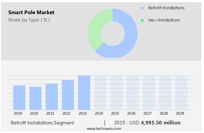 시장은 기존 도로 조명 기둥을 고급형 지능형 기둥으로 교체하는 리트로핏 설치 증가로 인해 급속히 성장하고 있습니다. 산업 추정 따르면 2027년까지 전 세계적으로 약 6400만 개의 스마트 폴이 설치될 것으로 예상됩니다. 이 트렌드는 기존 전통적인 가로등이 에너지 효율성, IoT 통합, 연결 솔루션, 공공 안전, 도시 인프라 개선 등 다양한 혜택을 제공하는 스마트 폴로 업그레이드되는 대규모 수요에 의해 주도되고 있습니다. 이러한 스마트 폴은 무선 통신, 센서 네트워크, 교통 관리, 감시 시스템, 환경 모니터링, 스마트 조명, 재생 에너지, 데이터 분석 등 다양한 기술을 통합합니다.