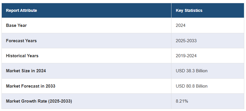 2024년 태양열 집열기 시장의 규모는 383억 달러에 달할 것으로 예상됩니다. IMARC 그룹은 2033년까지 시장 규모가 808억 달러에 달할 것으로 예상하고 있으며, 2025-2033년 동안 연평균 성장률(CAGR)이 8.21%에 달할 것으로 전망하고 있습니다. 에너지 수요를 충족하기 위한 지속 가능한 에너지 원의 활용 증가, 환경에 대한 인식 제고, 공공, 상업, 산업 및 인프라 프로젝트에 대한 투자 증가가 시장 성장을 주도하는 주요 요인입니다.