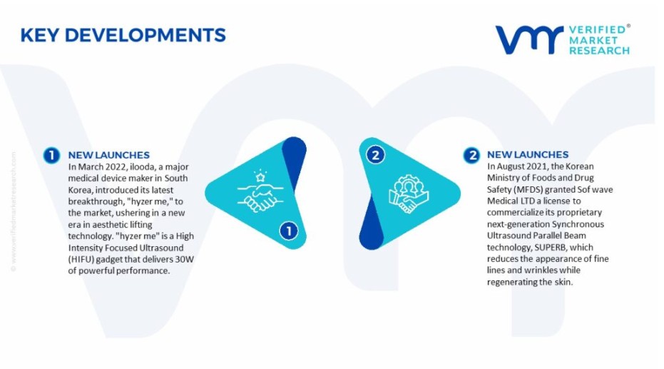 - 2021년 8월, 한국 식품의약품안전처(MFDS)는 소프웨이브 메디컬(Sof wave Medical LTD)에 자사의 차세대 동기식 초음파 평행 빔 기술인 SUPERB의 상용화 허가를 부여했습니다. 이 기술은 피부 재생을 촉진하면서 잔주름과 주름을 개선하는 효과가 있습니다.