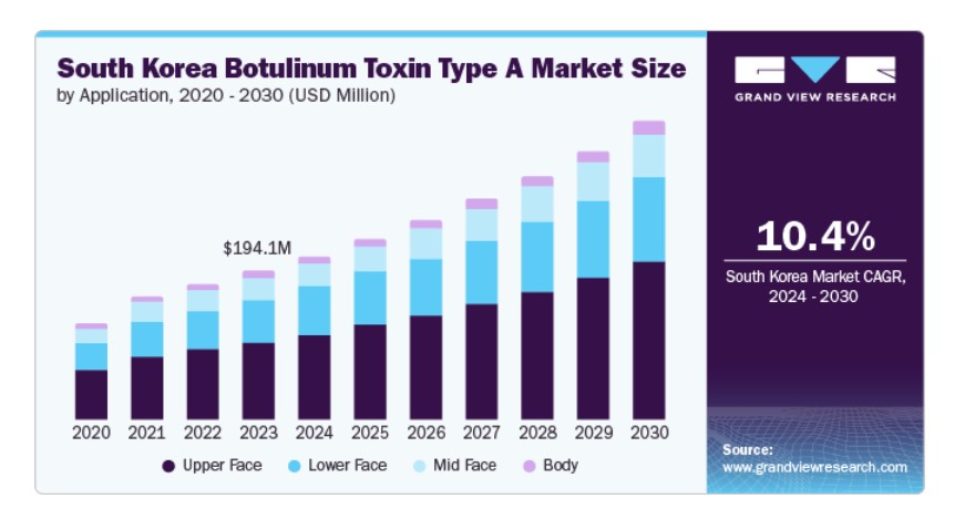 또 다른 주요 변화는 한국산 보툴리눔 독소 A형 산업의 패러다임 내에서 일어나고 있는데, 미용 주사제 기업들이 선진국 전역에서 두각을 나타내고 있기 때문이다. 메디톡스, 휴걸, 대웅, 휴온스 바이오파마와 같은 한국 기업들은 세계 최대 두 보툴리눔 독소 시장인 미국과 중국에 진출한 주요 한국 제조사들이다. 미국 시장은 주로 알러간의 제품인 보톡스 코스메틱이 주도해 왔으며, 해당 제품은 2022년과 2023년 국내에서 약 16억 달러의 매출을 기록했다. 그러나 한국 기업들의 공격적인 마케팅과 제품 승인 이후 미국 내 해당 제품의 성장은 정체 상태에 있다.