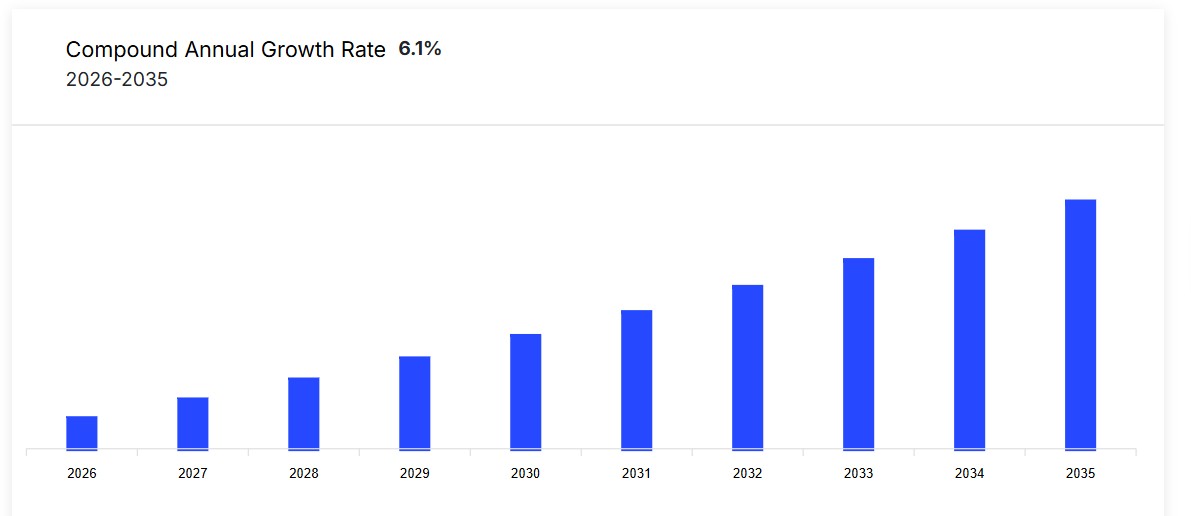2026년부터 2035년까지 연평균 복합 성장률(CAGR) 6.10%로 성장할 것으로 예상됩니다.