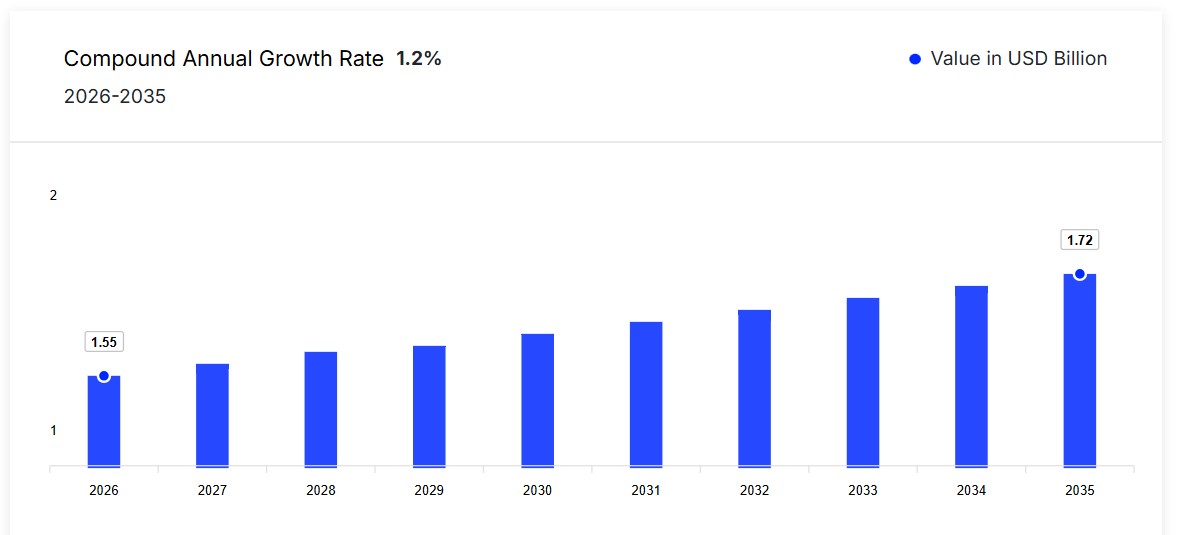 2026년부터 2035년까지 연평균 복합 성장률(CAGR) 1.20%로 성장할 것으로 예상됩니다.