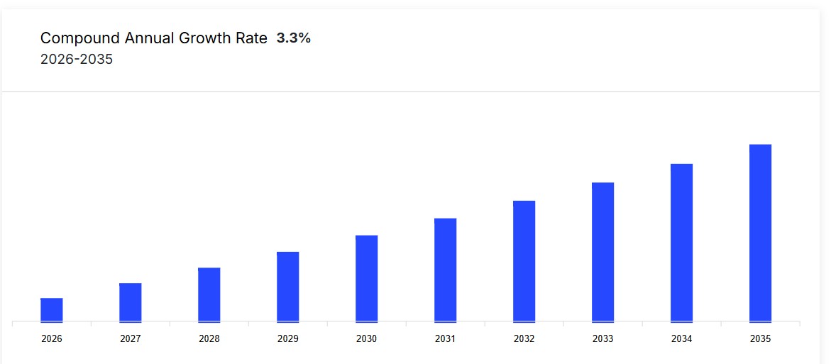 해당 시장은 2026년부터 2035년까지 연평균 복합 성장률(CAGR) 3.30%로 성장할 것으로 예상됩니다.