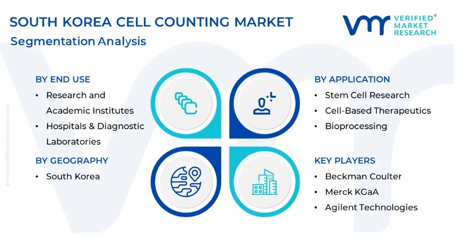 - 정부 바이오헬스 투자 계획 – 한국의 바이오헬스 뉴딜 2.0은 2030년까지 바이오기술 개발을 위해 400억 달러를 배정하여, 삼성바이오로직스, 셀트리온 및 신생 바이오테크 기업을 포함한 제약 제조, 임상 연구 및 규제 준수 분야에서 첨단 세포 계수 장비에 대한 상당한 수요를 촉진하고 있습니다.