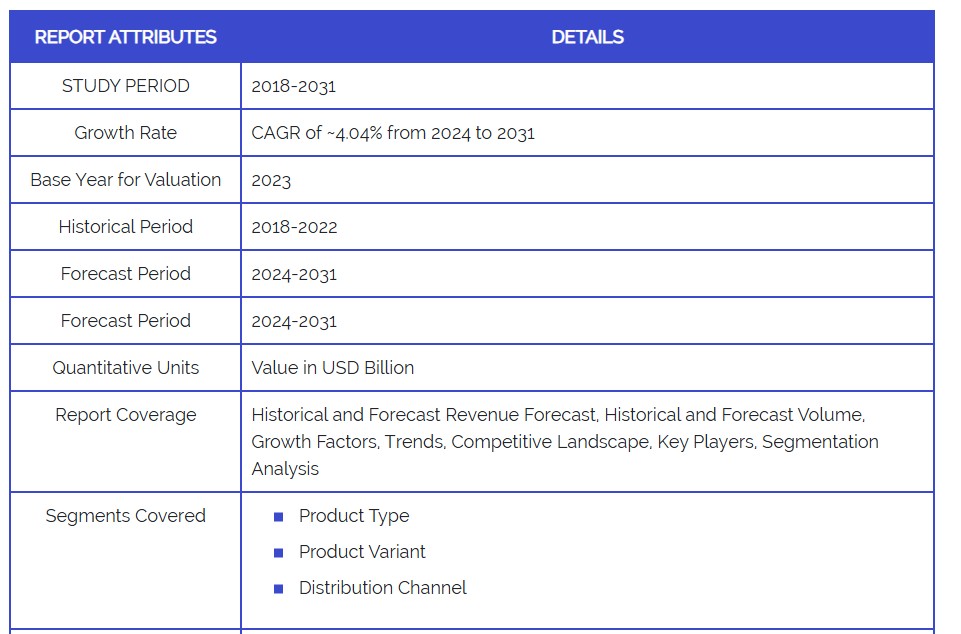 여기에 효과적인 광고 및 브랜딩 캠페인이 소비자의 초콜릿 제품 인지도와 선호도를 높이고 있습니다. 전자상거래와 전문점의 성장은 초콜릿 제품의 접근성을 높여 시장을 2024년부터 2031년까지 연평균 복합 성장률(CAGR) 4.04%로 성장시키고 있습니다.
