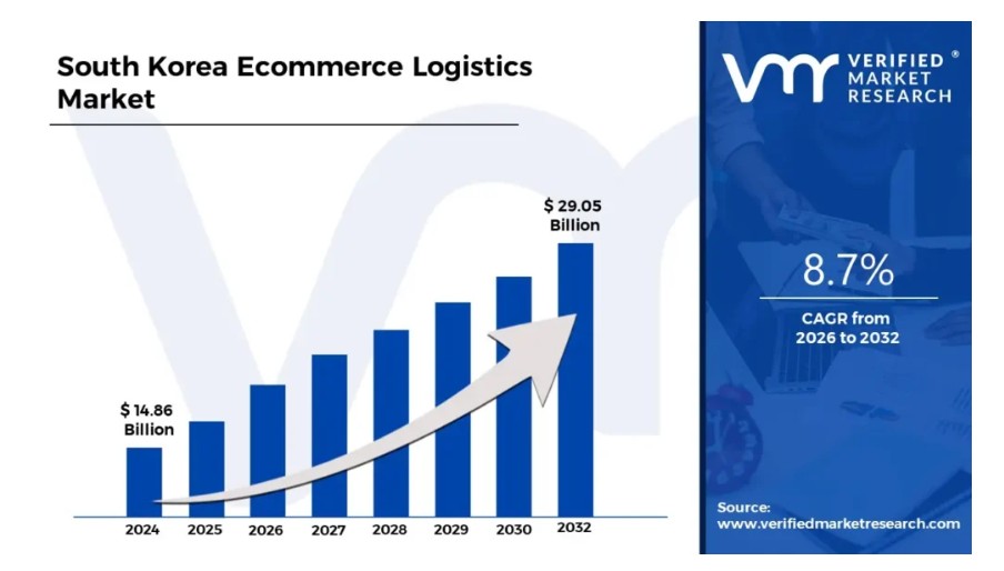 한국 전자상거래 물류 시장 규모는 2024년 기준 148억 6천만 달러로 평가되었으며, 2032년까지 290억 5천만 달러에 도달할 것으로 예상됩니다. 이는 2026년부터 2032년까지 연평균 복합 성장률(CAGR) 8.7%로 성장할 전망입니다.