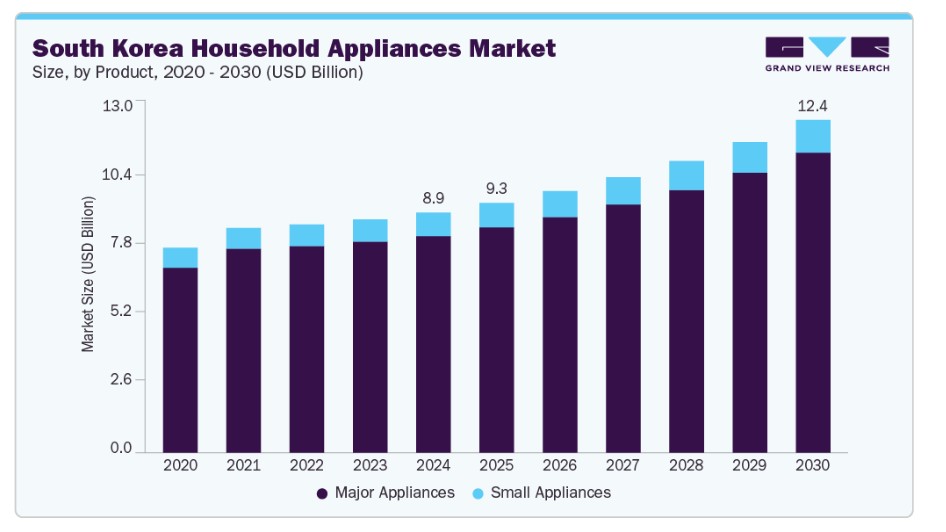 한국 소비자들은 인공지능(AI) 및 IoT와 같은 최신 기술을 탑재한 첨단 가전제품을 선호합니다. 그러나 환경 의식과 에너지 효율적인 솔루션 사용 성향 역시 가전제품 구매에 중요한 역할을 합니다. 도시 거주자들은 제한된 공간에 배치 가능하면서도 다중 혜택을 제공하는 가전제품을 선호합니다.