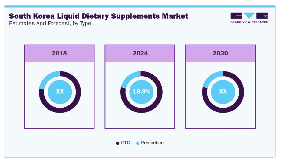 산전 건강 부문은 예측 기간 동안 가장 빠른 연평균 성장률(CAGR)을 보일 것으로 전망됩니다. 액상 보충제는 흡수가 용이하고 위장에 부담이 적어 특히 초산모나 입덧을 겪는 여성에게 유용합니다. 이러한 보충제는 태아 뇌 발달에 필수적인 엽산, 빈혈 예방을 위한 철분, 한국 여성에게 특히 부족한 비타민 D 등 필수 영양소를 공급합니다. 한국가정의학지에 게재된 “고령 임산부의 영양섭취 및 식이행동” 연구에 따르면, 임산부는 가장 높은 식이행동 점수를 보였습니다. 유제품, 고섬유질 식품, 과일 및 채소 섭취량이 임신 기간 동안 크게 증가하는 경향이 관찰되었습니다. 미량영양소 섭취는 전반적으로 부족했으며, 특히 비타민 B6, D, 엽산이 그러했다. 다만 지방, 칼슘, 아연, 비타민 B3는 제3삼분기에서 현저히 증가했다. 이러한 결과는 임신성 당뇨병, 고혈압 장애, 태아 기형, 저체중아 출산 등 합병증 위험이 높은 고령 임산부를 대상으로 한 맞춤형 영양 개입의 필요성을 시사한다.