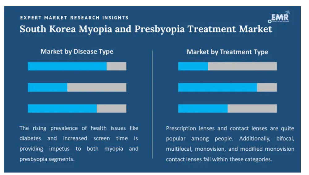 스마트폰 사용 증가와 당뇨병 같은 생활습관병이 한국의 근시 및 노안 치료 산업 성장을 돕고 있습니다.