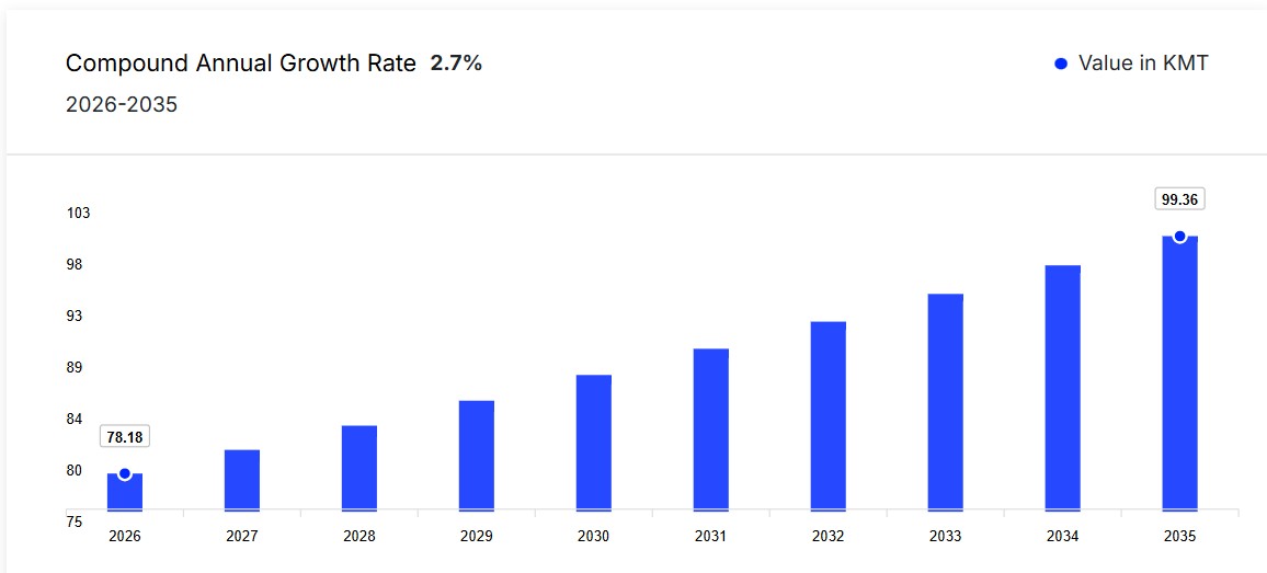 한국 참치 시장은 2025년 기준 76.12 KMT 규모로 집계되었습니다. 이 산업은 2026년부터 2035년까지의 예측 기간 동안 연평균 복합 성장률(CAGR) 2.70%로 성장하여 2035년까지 99.36 KMT에 달할 것으로 예상됩니다. 증가하는 환경 문제와 참치 양식업의 확장이 주어진 예측 기간 동안 참치 시장을 주도할 것으로 예상됩니다.