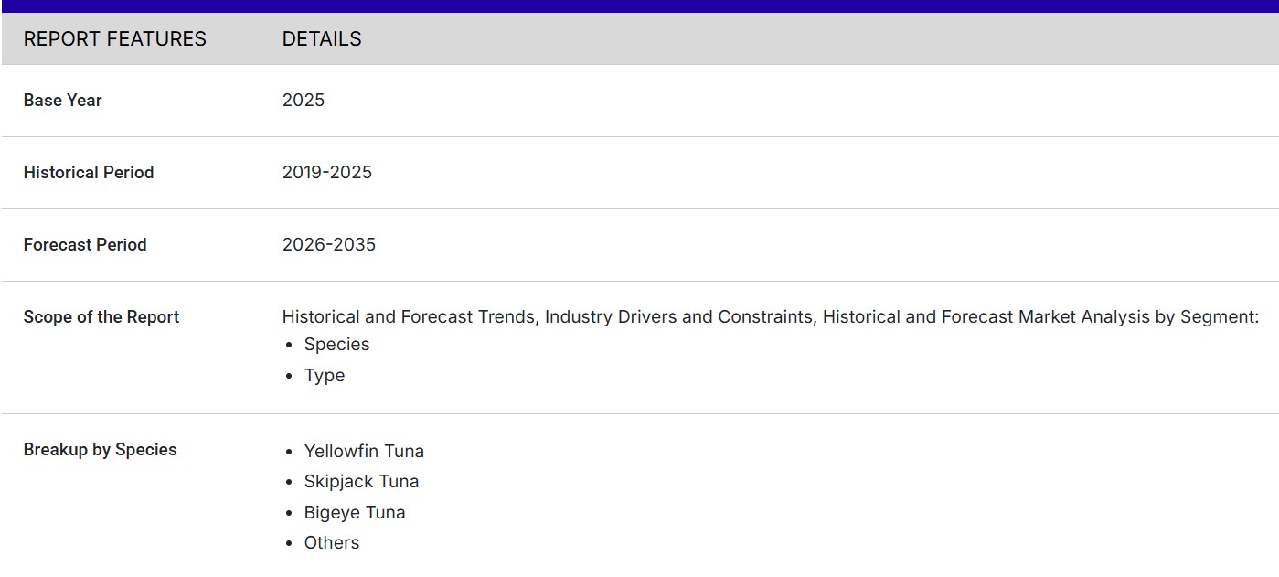 EMR의 “한국 참치 시장 보고서 및 2026-2035년 전망” 보고서는 다음과 같은 세분화를 기반으로 시장에 대한 상세한 분석을 제공합니다: