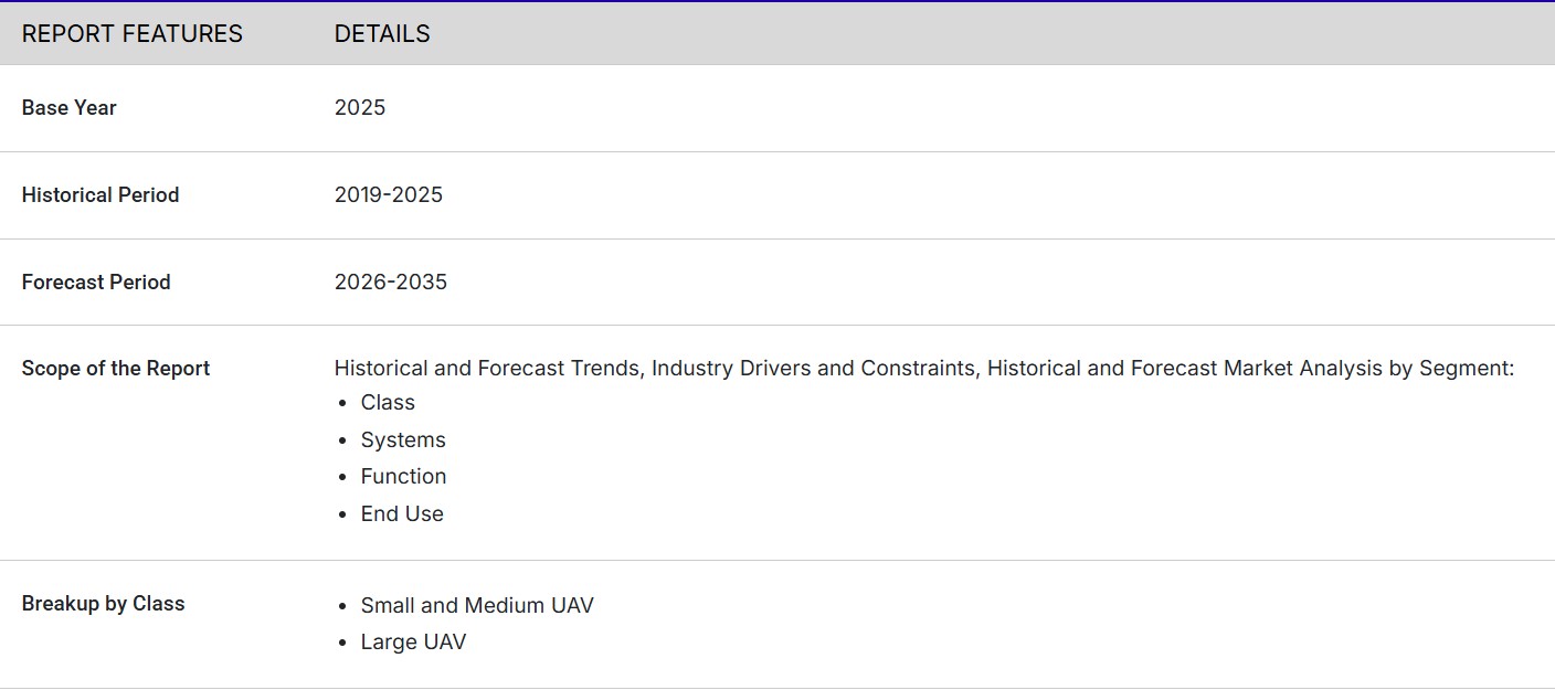“한국 무인항공기(UAV) 시장 보고서 및 2026-2035년 전망”은 다음 세분화를 기반으로 시장에 대한 상세한 분석을 제공합니다:
