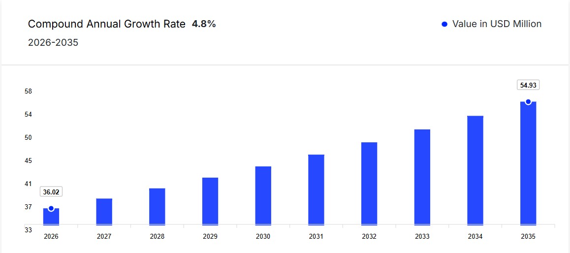 2026년부터 2035년까지 연평균 복합 성장률(CAGR) 4.80%로 성장할 것으로 전망됩니다.