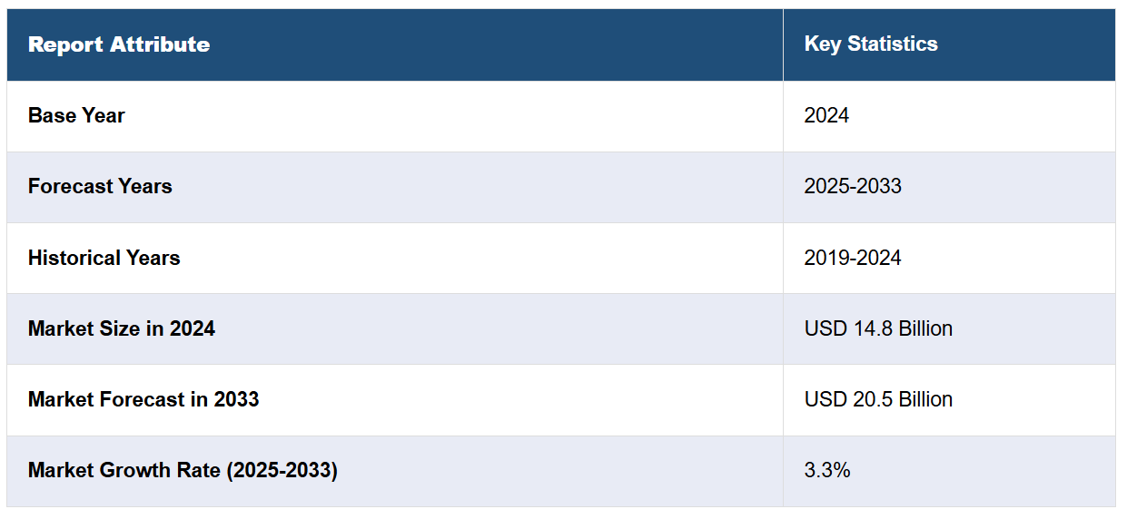 경쟁 환경에 대한 분석도 포함되어 있으며, 시장 구조, 주요 업체 포지셔닝, 성공 전략 등이 다루어집니다. 한국 특수화학 시장은 2024년 148억 달러에 이를 것으로 예상되며, 2025년부터 2033년까지 연평균 성장률 3.3%를 기록하여 2033년에는 205억 달러에 도달할 것으로 전망됩니다. 시장 성장은 산업 부문의 특수화학물질 의존도 증가, 나노기술 및 첨단 재료 과학의 통합, 정부 정책 시행, 제조업체와 교육·연구 기관 간의 협력 강화 등이 주요 요인으로 작용하고 있습니다.