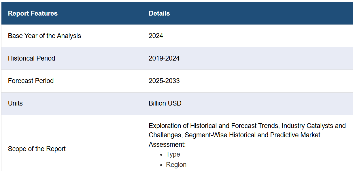IMARC 그룹은 시장 각 부문의 주요 동향 분석과 함께 2025-2033년 국가별 전망을 제공합니다. 본 보고서는 유형별 시장 분류를 제시합니다.