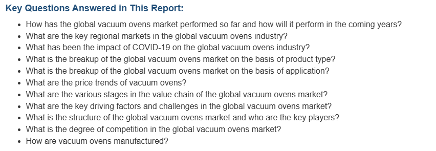 경쟁 구도에서는 Cole-Parmer, Memmert GmbH+Co.KG, MTI Corporation, Sheldon Manufacturing Inc, Thermo Fisher Scientific 등 주요 업체들이 포함되어 있습니다. 이 보고서는 글로벌 진공 오븐 시장에 대한 심층적인 통찰력을 제공하며, 기업가, 투자자, 연구원, 컨설턴트 등 진공 오븐 산업에 관여하거나 진출을 계획하는 모든 이들에게 필수적인 자료로 활용될 수 있습니다.