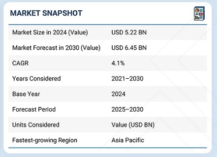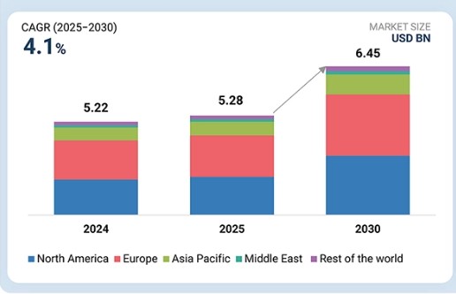 전 세계 항공기 열교환기 시장은 2025년 기준 52억 8천만 달러 규모로 추정되며, 2030년까지 64억 5천만 달러에 달할 것으로 전망됩니다. 이는 예측 기간 동안 연평균 복합 성장률(CAGR) 4.1%를 기록할 것으로 예상됩니다. 시장 성장은 주로 연료 효율적이고 경량화된 항공기에 대한 수요 증가, 항공 교통량 확대, 지속적인 기체 현대화 프로그램에 의해 주도되고 있습니다. 또한 엄격한 안전 및 환경 규제로 인해 OEM 및 MRO 공급업체들은 다양한 항공기 플랫폼 전반에 걸쳐 신뢰성을 높이고 배출량을 줄이며 규정 준수를 보장하는 첨단 열 관리 시스템을 채택하도록 압박받고 있습니다.