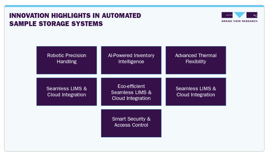 또한, 인건비 절감과 공정 효율성 증대를 위한 산업 전반의 자동화 수요 증가는 산업계의 도입을 더욱 촉진하고 있습니다. 자동화된 시료 관리 시스템의 확산은 실험실에서 처리량 증대, 시료 무결성 강화, 인적 오류 감소에 대한 필요성에 의해 주도되고 있습니다. 이러한 시스템은 시료 처리를 간소화하고 추적성을 향상시키며, 실험실 정보 관리 시스템(LIMS) 및 실험실 자동화 워크플로우와의 효율적인 통합을 가능하게 합니다. 바이오뱅킹, 제약 연구개발(R&D), 임상 진단 분야의 수요 증가 역시 도입을 가속화하며, 신속한 의사 결정과 강화된 규제 준수를 지원합니다. 바이오뱅킹 및 생명과학 분야의 성장바이오뱅킹 및 생명과학 연구의 급속한 확장은 전 세계적으로 자동화 샘플 저장 시스템 수요를 촉진하는 핵심 동력입니다. 유전체학, 단백질체학, 대사체학 및 세포 생물학 분야의 고처리량 연구가 증가함에 따라 연구 기관과 제약 회사들은 방대한 양의 생물학적 샘플을 생성하고 처리하고 있습니다. 예를 들어, 2025년 2월 영국 바이오센터는 영국에서 Azenta의 자동화된 BioArc Ultra -80°C 저장 시스템을 도입하여 바이오뱅킹 운영 전반에 걸쳐 샘플 보존, 지속 가능성 및 운영 효율성을 향상시켰습니다. DNA, RNA부터 혈장, 조직, 세포 배양에 이르기까지 이러한 샘플들은 안정성과 연구 가치를 유지하기 위해 엄격히 통제된 조건 하에서 장기 보존이 필요합니다. 특히 수백만 개의 샘플을 보관할 수 있는 대규모 바이오뱅크에서는 이러한 규모와 복잡성을 관리하기에 수동 저장 방식이 점점 더 부적합해지고 있습니다. 자동화 저장 시스템은 신속하고 정밀하게, 최소한의 인적 오류로 표본을 저장, 정리, 검색할 수 있는 필수 인프라를 제공하여 연구자들이 운영 물류보다 과학적 발견에 더 집중할 수 있도록 합니다. 또한 표본의 무결성과 추적 가능성 유지는 과학적 타당성과 규제 준수를 위해 매우 중요합니다. 자동화 시스템은 우수한 환경 제어를 제공하여 완전한 추적성을 보장하고, 수동 취급으로 인한 오염, 잘못된 라벨링 또는 열화 위험을 최소화합니다. 생명과학이 AI 및 머신러닝과 같은 데이터 집약적 기술과 점점 더 융합됨에 따라, 대규모로 고품질의 잘 보존된 생물학적 표본에 접근하는 것은 경쟁 우위가 되고 있습니다. 이러한 요소들로 인해 학술 연구 센터, 제약 R&D 파이프라인, 상업적 바이오뱅크 전반에 걸쳐 자동화된 샘플 저장 인프라에 대한 투자가 가속화되고 있으며, 이는 차세대 생물의학 혁신의 핵심 촉진제가 되고 있습니다. 증가하는 임상 및 진단 수요임상 진단 검사의 복잡성과 양이 증가함에 따라 자동화된 샘플 저장 시스템에 대한 수요가 촉진되고 있습니다. 만성 질환, 감염성 질환 및 맞춤형 의학에 대한 선진 검사가 의료 시스템에서 점차 도입됨에 따라, 실험실은 안전하게 보관되고 정확하게 추적되며 신속하게 접근해야 하는 방대한 생물학적 샘플로 인해 압도되고 있습니다. 수동 저장 방식은 더 이상 24시간 운영, 신속한 처리 시간 및 엄격한 규제 준수의 요구를 충족시키기에 충분하지 않습니다. 자동화 시스템은 최소한의 인적 개입으로 고밀도, 온도 제어 저장 공간을 제공함으로써 이러한 과제를 해결하여 오류를 줄이고 샘플 무결성을 보장합니다. 또한 정밀의학 및 유전체 진단 기술의 부상은 반복적이고 정확한 시료 회수가 가능한 장기 초저온 보관을 요구합니다. 자동화 시료 저장 시스템은 실험실 정보 관리 시스템(LIMS)과 원활하게 통합되어 CLIA, CAP, ISO 15189와 같은 규제 기준에 필수적인 완전한 추적성과 디지털 감사 추적을 가능하게 합니다. 의료 서비스 제공자에게 운영 비용과 인력 부족을 관리하면서 더 빠르고 신뢰할 수 있는 진단을 제공해야 하는 압박이 증가함에 따라, 자동화 저장 시스템은 전 세계 병원, 연구 기관 및 진단 실험실에서 수요를 촉진하는 전략적 투자가 되었습니다. 시장 집중도 및 특성자동화 샘플 저장 시스템 산업은 로봇 공학, 초저온 제어 및 스마트 데이터 통합의 발전에 힘입어 높은 수준의 혁신을 보여줍니다. 현대식 시스템은 AI 기반 재고 관리, 예측 유지보수, 실험실 정보 관리 시스템(LIMS) 및 클라우드 플랫폼과의 원활한 연결성을 통합하여 단순한 저장 기능을 넘어섭니다. 예를 들어, 2025년 3월 Azenta는 영국에서 중앙 집중식 자동화 ULT 저장 시스템을 출시하여 확장성, 효율성 및 지속 가능성을 해결하는 동시에 바이오의약품 저장 분야에서 수동식 냉동고 농장의 주요 한계를 극복하였습니다. 이러한 혁신은 실시간 샘플 추적, 공간 활용도 향상, 규제 기준 준수 강화를 가능케 합니다. 정밀한 샘플 회수를 위한 로봇 암, RFID/바코드 식별, 확장성을 위한 모듈식 설계 등의 기능은 저장 시스템을 실험실, 바이오뱅크, 제약 R&D 환경의 전략적 자산으로 전환시키고 있으며, 자동화는 효율성, 보안성, 과학적 정확성의 핵심 촉진 요인으로 자리매김하고 있습니다. 글로벌 시장은 최근 몇 년간 중간에서 높은 수준의 M&A 활동을 목격했으며, 이는 주요 업체들의 산업 통합 및 전략적 확장이 증가하고 있음을 반영합니다. 기존 생명과학 및 실험실 