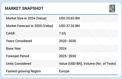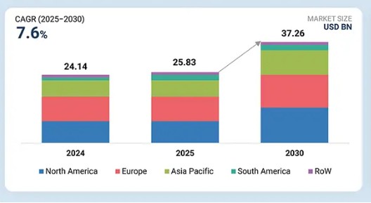 세균 검사 시장은 2025년 기준 258억 3천만 달러 규모로 추정됩니다. 연평균 복합 성장률(CAGR) 7.6%를 기록하며 2030년까지 372억 6천만 달러에 달할 것으로 전망됩니다. 세균 검사 장비 시장은 2025년 기준 159억 5천만 달러 규모로 추정됩니다. 예측 기간 동안 연평균 복합 성장률(CAGR) 7.1%로 성장하여 2030년까지 224억 8천만 달러에 도달할 것으로 전망됩니다. 세균 검사 시장은 공중 보건 문제, 규제 압박, 기술 발전이 복합적으로 작용하며 성장하고 있습니다. 식품 및 음료, 수자원, 제약, 의료, 개인 위생 및 화장품 등 다양한 산업 분야에서 식중독, 수질 오염, 병원 내 감염 발생률이 증가함에 따라 신뢰할 수 있는 정기적 세균 검사의 필요성이 높아지고 있습니다. 유럽 및 북미와 같은 지역의 엄격한 안전 규정은 규정 준수를 보장하고 소비자를 보호하기 위해 빈번한 미생물 검사를 의무화하여 수요를 더욱 촉진하고 있습니다.