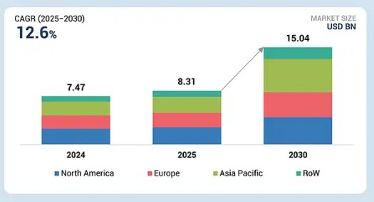 글로벌 콜드 체인 모니터링 시장은 2025년 83억 1천만 달러에서 2030년까지 연평균 성장률(CAGR) 12.6%로 성장하여 150억 4천만 달러에 달할 것으로 전망됩니다. 엄격한 규제 기준과 준수 요건은 온도에 민감한 제품의 안전성과 무결성을 보장함으로써 콜드 체인 모니터링 산업을 주도합니다. FDA, USDA, EMA를 포함한 규제 기관들은 지속적인 모니터링, 정확한 문서화, 보관 및 운송 지침 준수를 의무화합니다. IoT 기반 센서, 데이터 로거, 클라우드 플랫폼과 같은 첨단 솔루션은 기업이 이러한 요구 사항을 충족하고 위험을 줄이며 제품 품질을 유지하는 데 도움을 줍니다. 규제 준수에 대한 집중은 또한 공급망 효율성과 투명성을 향상시킵니다.