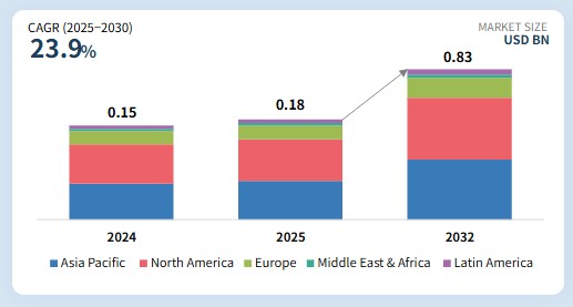 데이터 센터 침지 냉각 유체 시장은 2025년 1억 8천만 달러에서 2032년까지 연평균 복합 성장률(CAGR) 23.9%를 기록하며 8억 3천만 달러에 달할 것으로 전망된다. 데이터 센터 침지 냉각 유체 시장은 데이터 센터 시장 확대, 데이터 센터 내 액체 냉각 기술 사용 증가(이는 DTC 및 침지 냉각 유체 수요 모두를 촉진함), 그리고 서버 랙 밀도 증가와 같은 요인들에 의해 주도되고 있습니다.