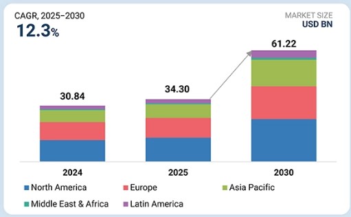 전 세계 당뇨병 치료 기기 시장은 2025년 343억 달러에서 2030년 612억 2천만 달러에 달할 것으로 전망되며, 예측 기간 동안 연평균 성장률(CAGR) 12.3%를 기록할 것으로 예상됩니다. 당뇨병 치료 기기는 환자와 의료진이 최적의 혈당 조절을 유지할 수 있도록 지원함으로써 당뇨병의 모니터링, 관리 및 치료를 돕기 위해 설계된 의료 기술입니다. 이러한 기기에는 혈당 모니터링 시스템(자가 모니터링 및 연속 혈당 모니터), 인슐린 투여 장치(주사기, 펜, 펌프, 제트 주사기), 모바일 애플리케이션 및 연결 플랫폼과 같은 디지털 당뇨병 관리 도구가 포함될 수 있습니다. 적용 분야에 따라 일상적인 자가 관리 솔루션부터 집중적인 당뇨병 관리를 위한 첨단 치료 시스템까지 다양합니다. 당뇨병 관리 기기는 가정 간호 및 임상 환경 모두에서 널리 사용됩니다.