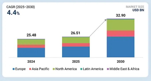 전 세계 진단 영상 시장은 2025년 265억 1천만 달러에서 2030년까지 연평균 성장률(CAGR) 4.4%를 기록하며 329억 달러 규모에 이를 것으로 전망된다. 진단 영상 시장은 현대 의료에서 가장 핵심적인 분야 중 하나로 발전하여, 다양한 질환 영역에서 조기 질환 발견, 치료 계획 수립, 치료 결과 모니터링의 기반 역할을 수행하고 있습니다. X선, CT, MRI, 초음파, PET 및 하이브리드 기술과 같은 진단 기법들은 만성 질환 발생률 증가, 전 세계 인구 고령화, 국가 검진 프로그램 확대에 힘입어 지속적인 수요 증가를 보이고 있습니다. 또한 디지털 전환으로 시장이 재편되고 있으며, 인공지능(AI), 머신러닝, 클라우드 플랫폼의 통합으로 진단 영상이 단순 시각화 도구에서 핵심 의사 결정 지원 도구로 전환되고 있습니다. 의료 시스템이 가치 기반 치료와 정밀 의학으로 전환됨에 따라 정확도를 높이고 오진률을 낮추며 처리량을 향상시키는 첨단 영상 솔루션의 중요성이 부각되고 있습니다. 병원 확장, 공공-민간 협력, 신흥 경제국에서의 접근성 확대가 성장을 더욱 뒷받침하며, 진단 영상은 전 세계 의료 서비스 제공의 핵심 축으로 자리매김하고 있습니다.