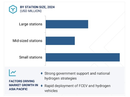 도요타, 현대, 혼다 등 주요 자동차 제조사들이 아시아 태평양 지역 수소 연료전지 차량 기술에서 선도적 역할을 하고 있습니다. 이들 기업은 수소 충전소 확장을 주도합니다. 아시아 태평양 지역, 특히 일본과 한국은 혁신과 기술 역량의 허브 역할을 합니다. 많은 아시아 태평양 국가들은 에너지 원천 다각화를 통해 에너지 안보 강화에 주력하고 있습니다. 수소는 수입 화석 연료에 대한 의존도를 낮추므로, 더 큰 에너지 안보 전략의 핵심 요소로서 수소 충전소 확장을 지원할 수 있습니다.