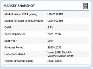 글로벌 광전 센서 시장은 2024년 21억 8천만 달러에서 2032년까지 40억 2천만 달러로 성장할 것으로 예상되며, 연평균 복합 성장률(CAGR) 8.1%를 기록할 전망이다. 제조, 포장, 물류 산업 전반에 걸쳐 자동화 및 로봇 공학의 채택이 증가함에 따라 시장이 급속히 성장하고 있습니다. 이러한 센서는 정밀한 비접촉식 물체 감지를 가능하게 하여 운영 효율성과 안전성을 향상시킵니다. 또한 스마트 센싱, IoT 통합 및 소형화 기술의 발전으로 현대 산업 및 소비자 애플리케이션에서의 활용이 확대되며 지속적인 시장 수요를 이끌고 있습니다.