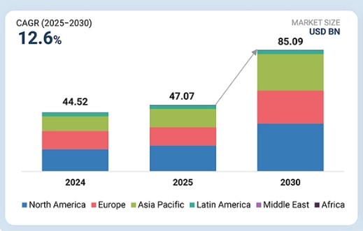 유전체학 시장은 2025년 470억 7천만 달러에서 2030년까지 850억 9천만 달러에 달할 것으로 전망되며, 2025년부터 2030년까지 연평균 복합 성장률(CAGR) 12.6%를 기록할 것으로 예상됩니다. 유전체학 시장 성장은 유전체학 프로젝트에 대한 정부 자금 지원 증가, 바이러스성 및 유전성 질환 유병률 상승, 차세대 시퀀싱(NGS) 플랫폼 발전, 그리고 유전체학 분야의 응용 확대에 의해 주도되고 있습니다.