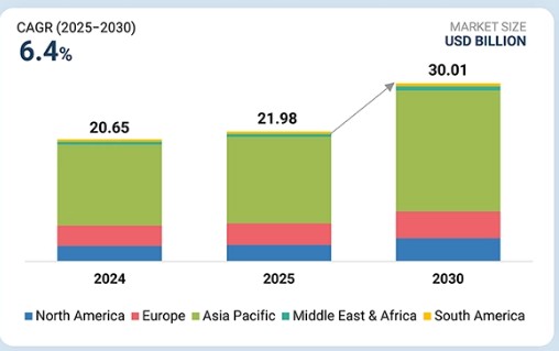 희토류 자석 시장은 2025년 219억 8천만 달러에서 2030년까지 연평균 복합 성장률(CAGR) 6.4%로 300억 1천만 달러에 달할 것으로 전망됩니다. 이 시장은 NdFeB 및 SmCo 자석 등 유형별로 구분됩니다. 네오디뮴-철-붕소(NdFeB) 자석은 높은 자력과 고성능 응용 분야에서의 효율성으로 인해 점점 더 인기를 얻고 있습니다. 이러한 자석이 소비자 가전, 로봇, 풍력 터빈 및 전기 자동차에 사용되면서 시장이 확대되고 있습니다.