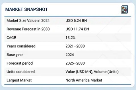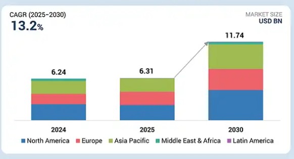 글로벌 위성 페이로드 시장은 2024년 62억 8천만 달러 규모였으며, 예측 기간 동안 연평균 복합 성장률(CAGR) 13.2%로 2025년 63억 1천만 달러에서 2030년 117억 4천만 달러로 성장할 것으로 전망됩니다.