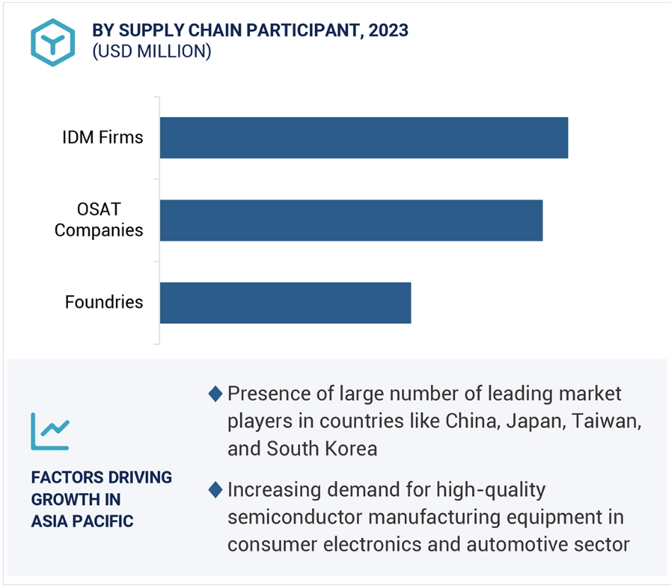 아시아 태평양 지역은 중국, 일본, 대만, 한국 등 주요 국가에 선도적인 반도체 제조 장비 공급업체가 존재하기 때문에 반도체 제조 장비 시장을 지배할 것으로 예상됩니다.