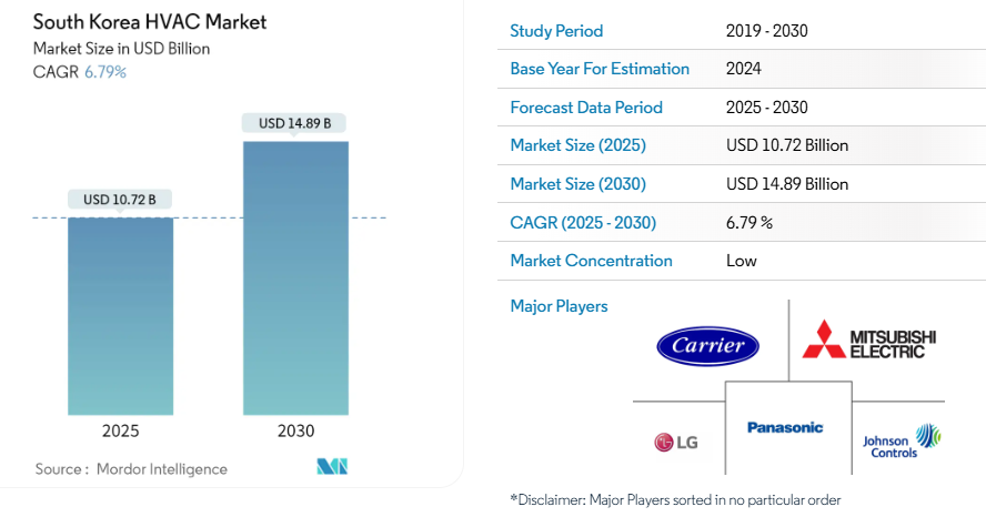 한국의 HVAC 시장은 가처분 소득 증가, 건설 활동 확대, 에너지 효율성 강조 등으로 인해 향후 몇 년 동안 상당한 성장을 경험할 것으로 예상됩니다.